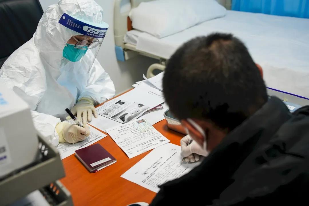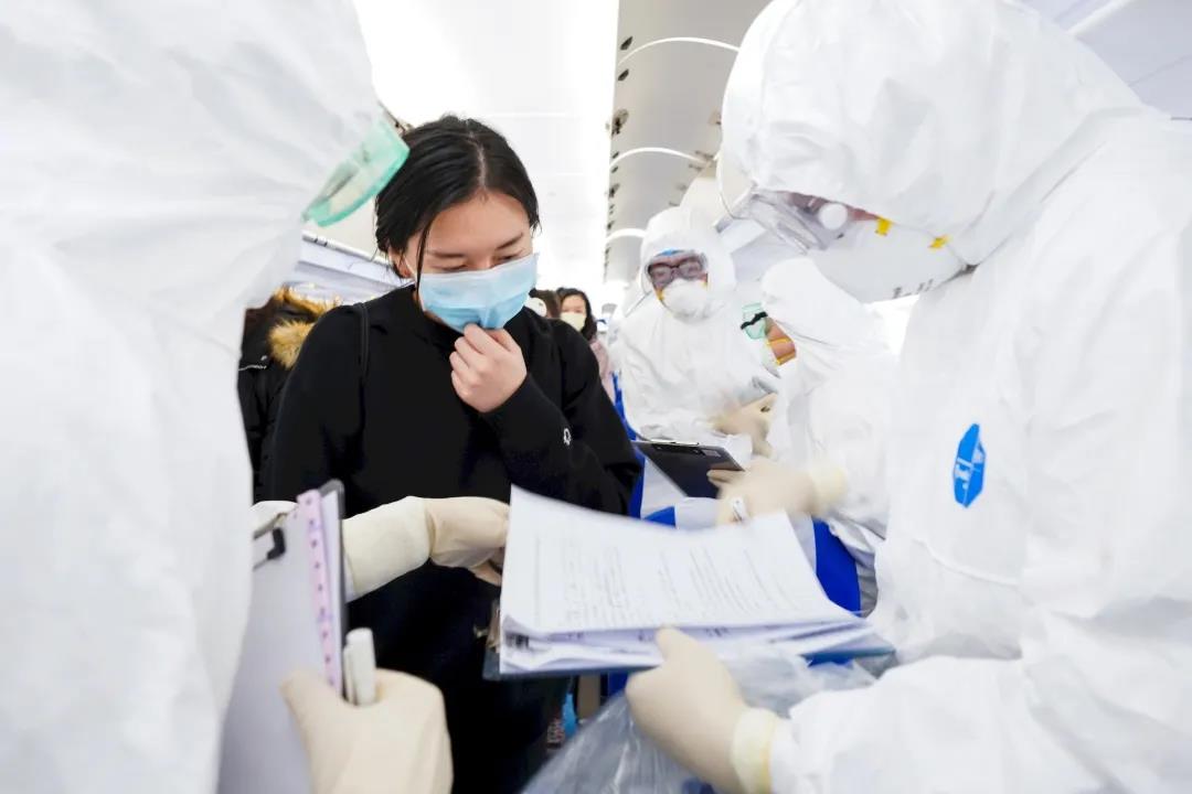 2月27日,上海海关关员对来自重点地区旅客开展流行病学调查。