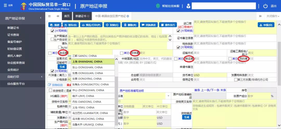 1、起运港、目的港、卸货港、转运港改为下拉框;