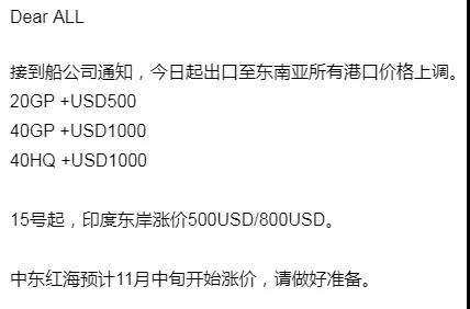 继东南亚运费也大涨之后,又有航线“按捺不住"了。