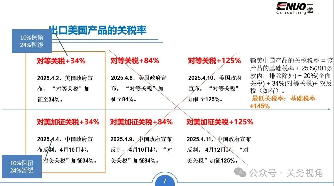 1)美国总体保留加征关税30%(全面关税20%+对等关税10%)+及24%暂缓90天;